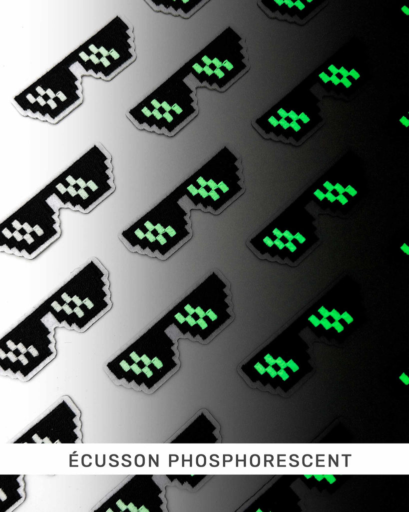 "Cet écusson lunette thug life phosphorescent, inspiré du mème légendaire, donnera un style iconique, une touche rebelle et un effet lumineux en bonus."